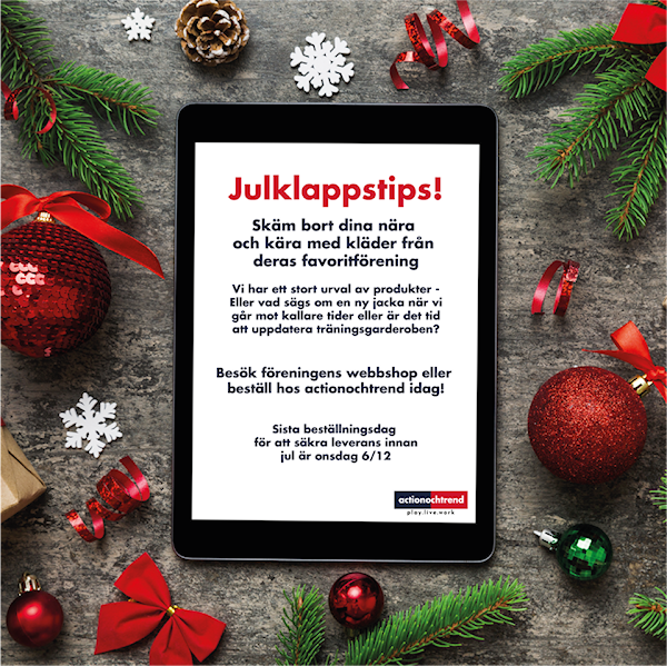 För att säkra leverans innan jul beställ föreningskläderna senast onsdag 6/12 via webbutiken.